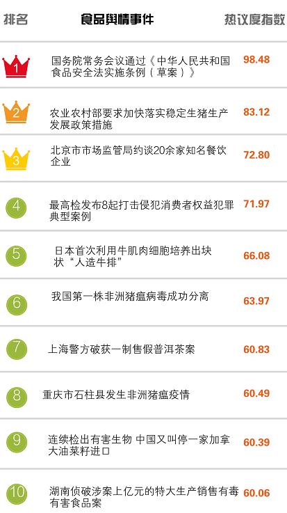 食品輿情排行榜|《中國人民共和國食品安全法實施條例(草案)》通過