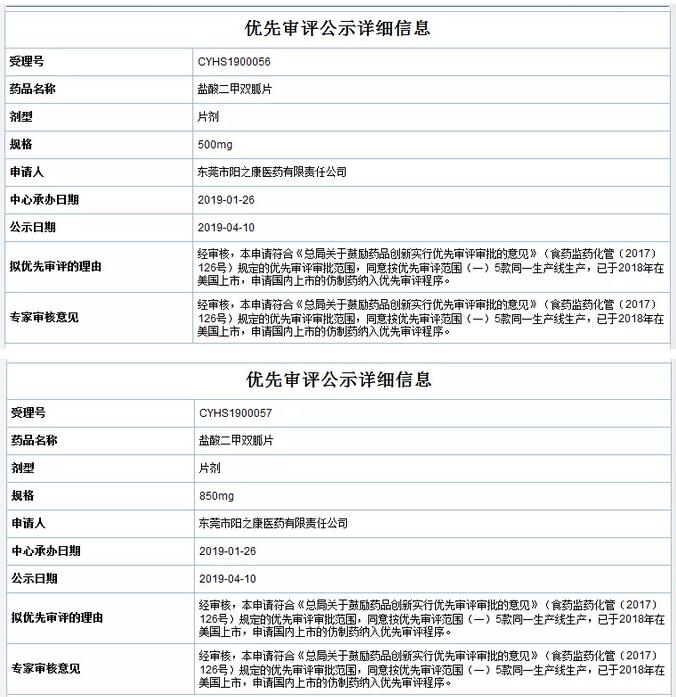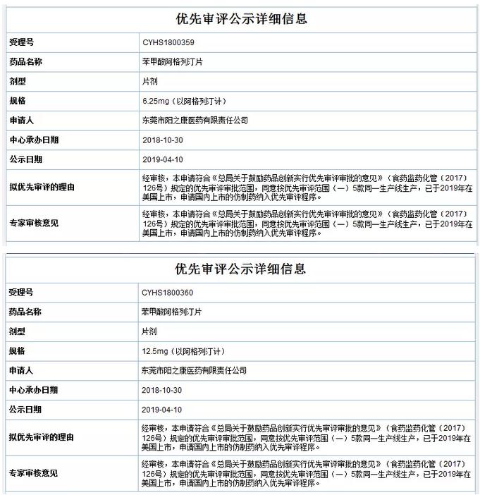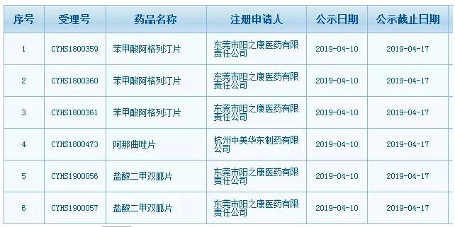 4月10日,藥審中心網(wǎng)站擬優(yōu)先審評公示欄目新增6個品種。東莞市陽之康醫(yī)藥有限責任公司的苯甲酸阿格列汀片(規(guī)格為6.25mg、12.5mg、25mg)、杭州中美華東制藥有限公司的阿那曲唑片、東莞市陽之康醫(yī)藥有限責任公司的鹽酸二甲雙胍片(規(guī)格為500mg、850mg)有望加入優(yōu)先審評行列。