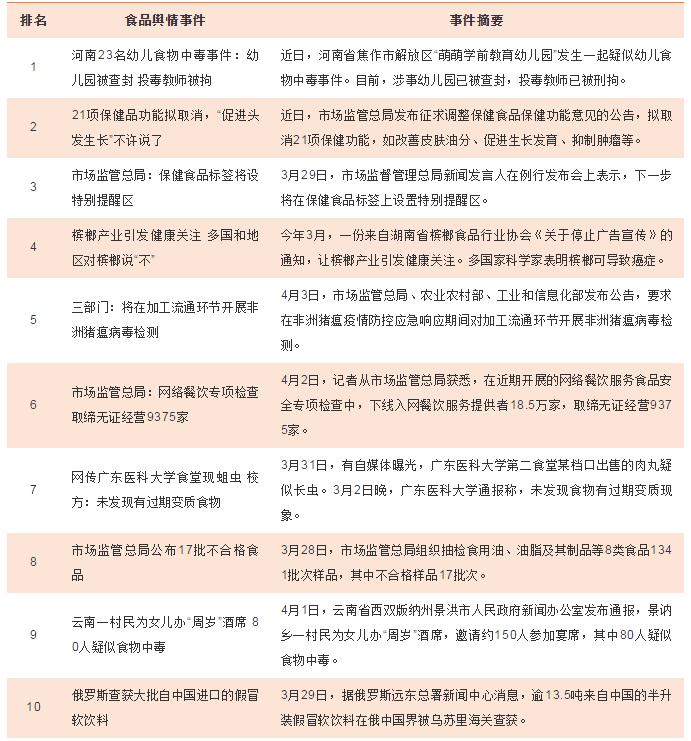 食品輿情事件排行榜
