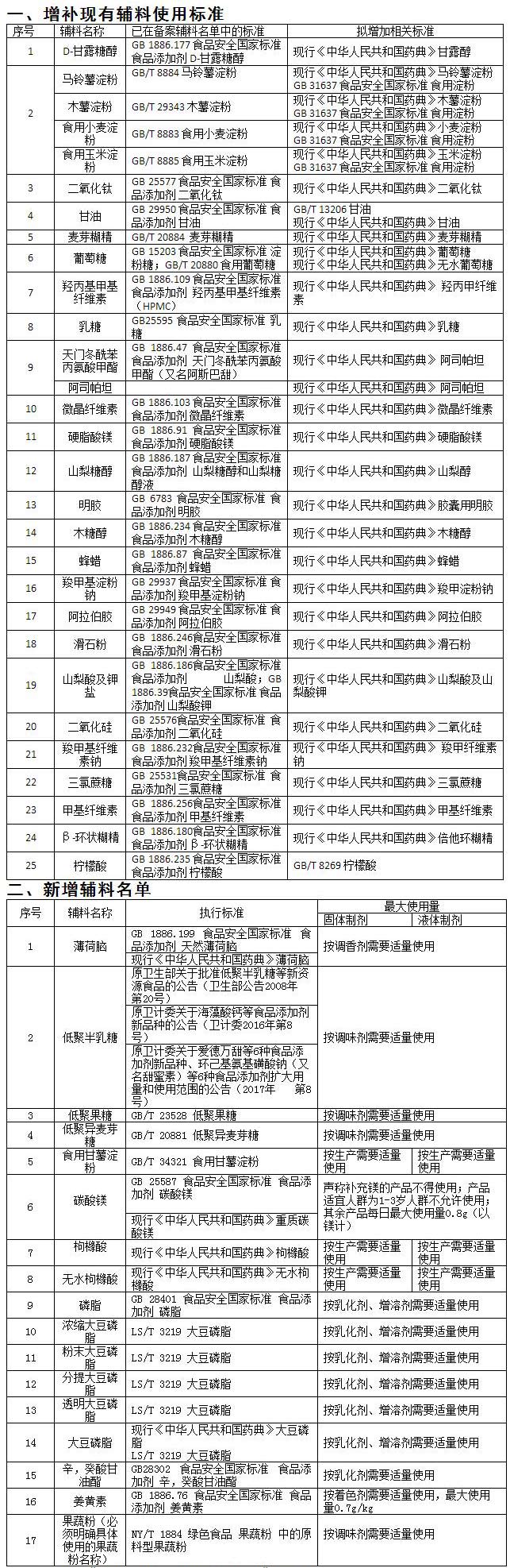附件:1.保健食品備案產(chǎn)品可用輔料增補名單(一)