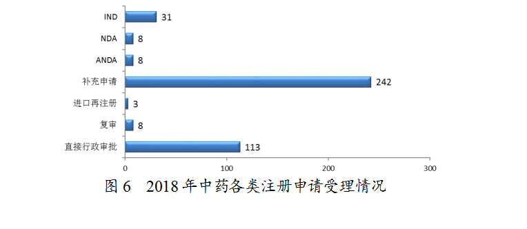 藥審中心受理1-6類中藥新藥注冊(cè)申請(qǐng)39件,其中受理中藥NDA 8件(涉及8個(gè)品種),較2017年增長(zhǎng)了7倍;中藥IND 31件(涉及29個(gè)品種),其中1類中藥創(chuàng)新藥IND申請(qǐng)有2件(涉及1個(gè)品種)。