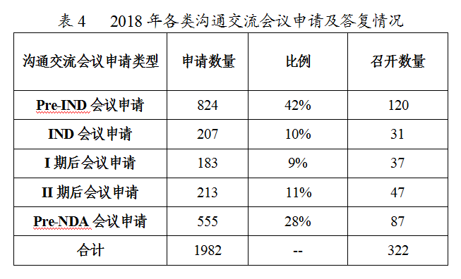 根據(jù)申請(qǐng)人擬溝通的問題及提交的支持性材料,經(jīng)審核評(píng)估,2018年藥審中心召開溝通交流會(huì)322次,其余均以書面形式進(jìn)行了答復(fù),2018年各類溝通交流會(huì)議申請(qǐng)及答復(fù)情況詳見表4。