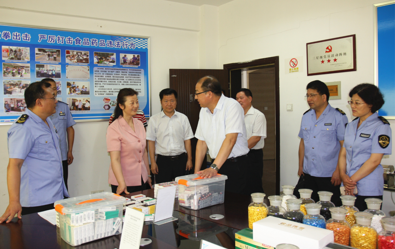 圖為安徽省藥品監(jiān)督管理局黨組書記、局長吳麗華一行在滁州市市場監(jiān)督管理局調(diào)研藥品排查打假情況。蔣守福 攝