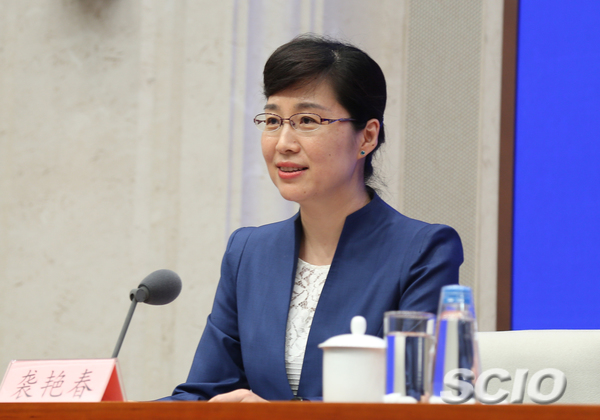 國(guó)新辦新聞局副局長(zhǎng)、新聞發(fā)言人襲艷春(張馨 攝)