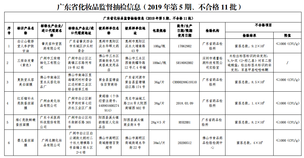 廣東省藥品監(jiān)督管理局:11批次化妝品抽檢不合格