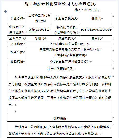 飛檢通報(bào):對(duì)廣州市花都區(qū)英濤化妝品廠飛行檢查通報(bào)