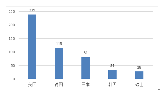 2019年,美國(guó)、德國(guó)、日本、韓國(guó)、瑞士醫(yī)療器械在中國(guó)醫(yī)療器械進(jìn)口產(chǎn)品首次注冊(cè)數(shù)量排前5位,注冊(cè)產(chǎn)品數(shù)量約占2019年進(jìn)口產(chǎn)品首次注冊(cè)總數(shù)量的75.4%,與2018年相比基本持平。