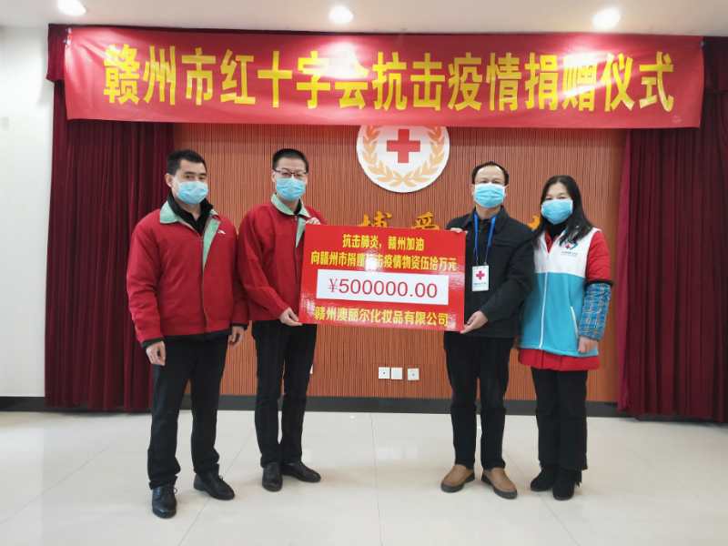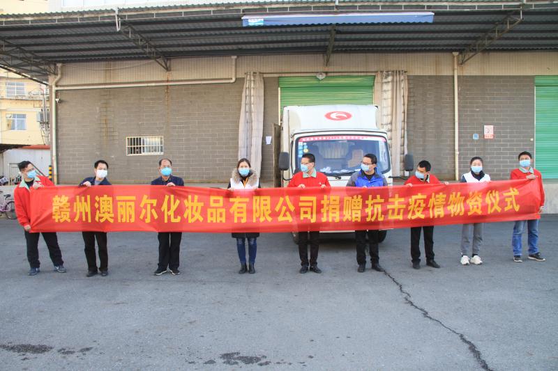 2月20日上午,贛州澳麗爾化妝品有限公司向贛州市紅十字會(huì)捐贈(zèng)價(jià)值50萬(wàn)元的84消毒液3000瓶、消毒凝膠14445支,助力新冠肺炎疫情防控工作。除此之外,還陸續(xù)通過(guò)贛縣區(qū)紅十字會(huì)、寧都縣紅十字會(huì)、龍南縣紅十字會(huì)分別捐贈(zèng)了價(jià)值20萬(wàn)元、10萬(wàn)元、5萬(wàn)元的防疫物資。其表示將持續(xù)關(guān)注疫情動(dòng)態(tài),擔(dān)當(dāng)起社會(huì)責(zé)任,和全國(guó)人民一起打贏這場(chǎng)“疫情保衛(wèi)戰(zhàn)”!