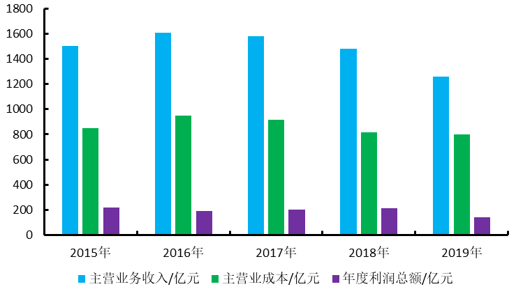 2015年~2019年國內化妝品制造業(yè)規(guī)模以上企業(yè)主要經濟指標