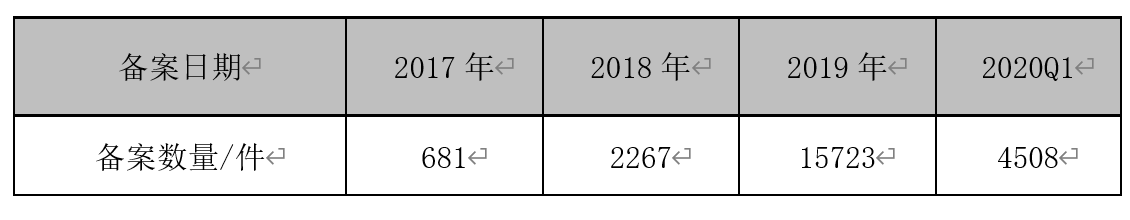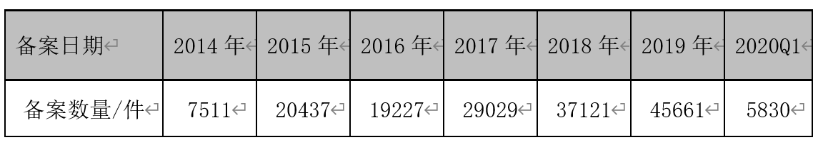 2014年~2019年國內非特化妝品年度備案數(shù)量(數(shù)據(jù)來源:國家藥品監(jiān)督管理局,截止日期2020年4月1日)
