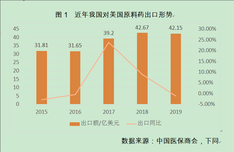 圖1 近年我國(guó)對(duì)美國(guó)原料藥出口形勢(shì) 數(shù)據(jù)來(lái)源:中國(guó)醫(yī)保商會(huì) 下同