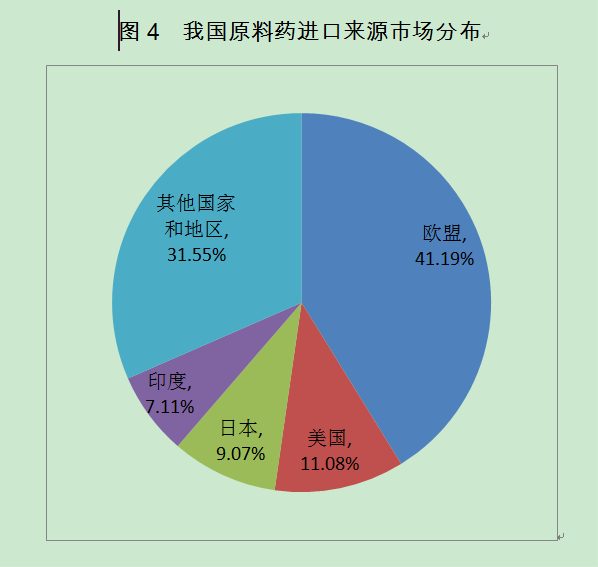 圖4 我國(guó)原料藥進(jìn)口來(lái)源市場(chǎng)分布