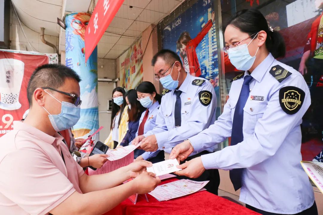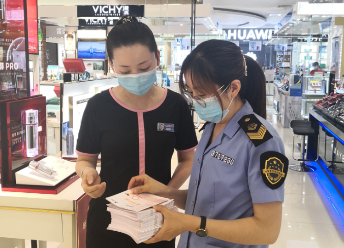 淄博市市場(chǎng)監(jiān)管局監(jiān)管人員向群眾發(fā)放化妝品安全相關(guān)知識(shí)。(山東省藥監(jiān)局供圖)