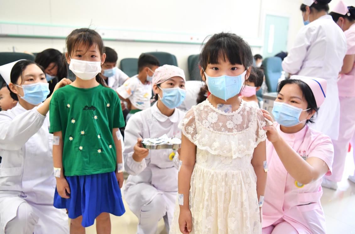 6月21日,在安徽省亳州市中醫(yī)院,醫(yī)護(hù)人員為小朋友貼“三伏貼”。(劉勤利 攝)