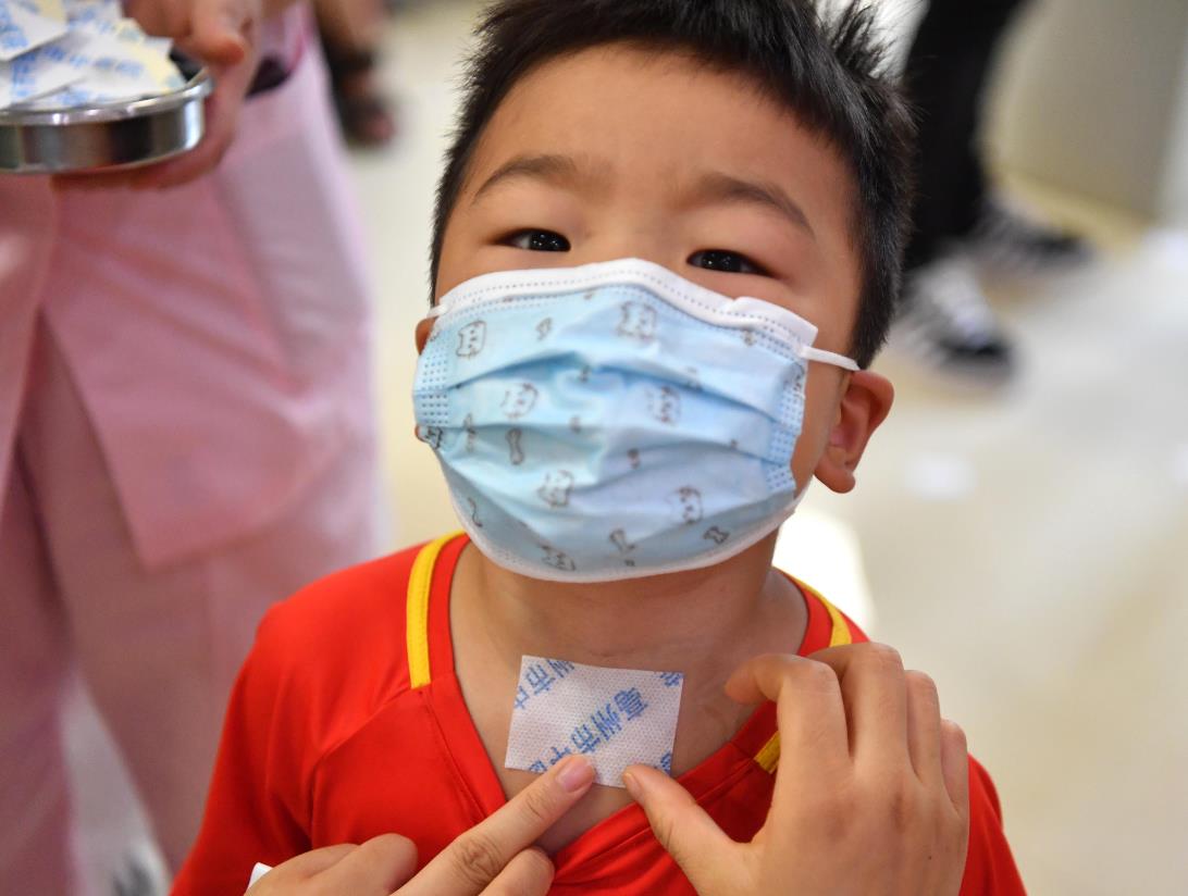 6月21日是農(nóng)歷二十四節(jié)氣中的夏至,許多市民及兒童來到安徽省亳州市中醫(yī)院,接受“冬病夏治”中醫(yī)療法。圖為醫(yī)護(hù)人員為小朋友貼“三伏貼”。(劉勤利 攝)