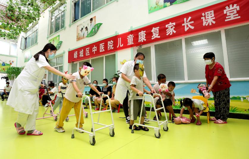 圖為8月25日,在嶧城區(qū)中醫(yī)院,康復(fù)治療師對(duì)殘疾兒童進(jìn)行康復(fù)訓(xùn)練。據(jù)悉,嶧城區(qū)殘疾人聯(lián)合會(huì)為家庭困難的殘疾兒童提供了免費(fèi)康復(fù)治療。(吉喆 攝)