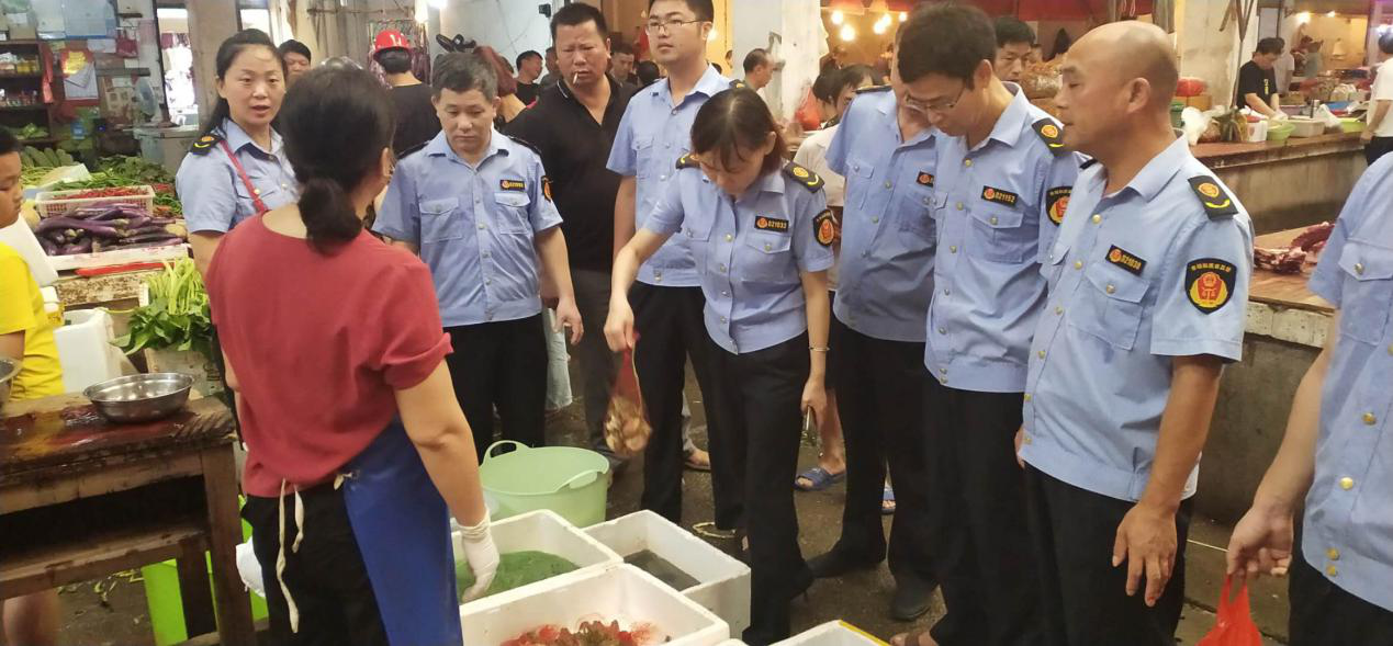 圖為水產(chǎn)品市場(chǎng)摸排現(xiàn)場(chǎng)。
