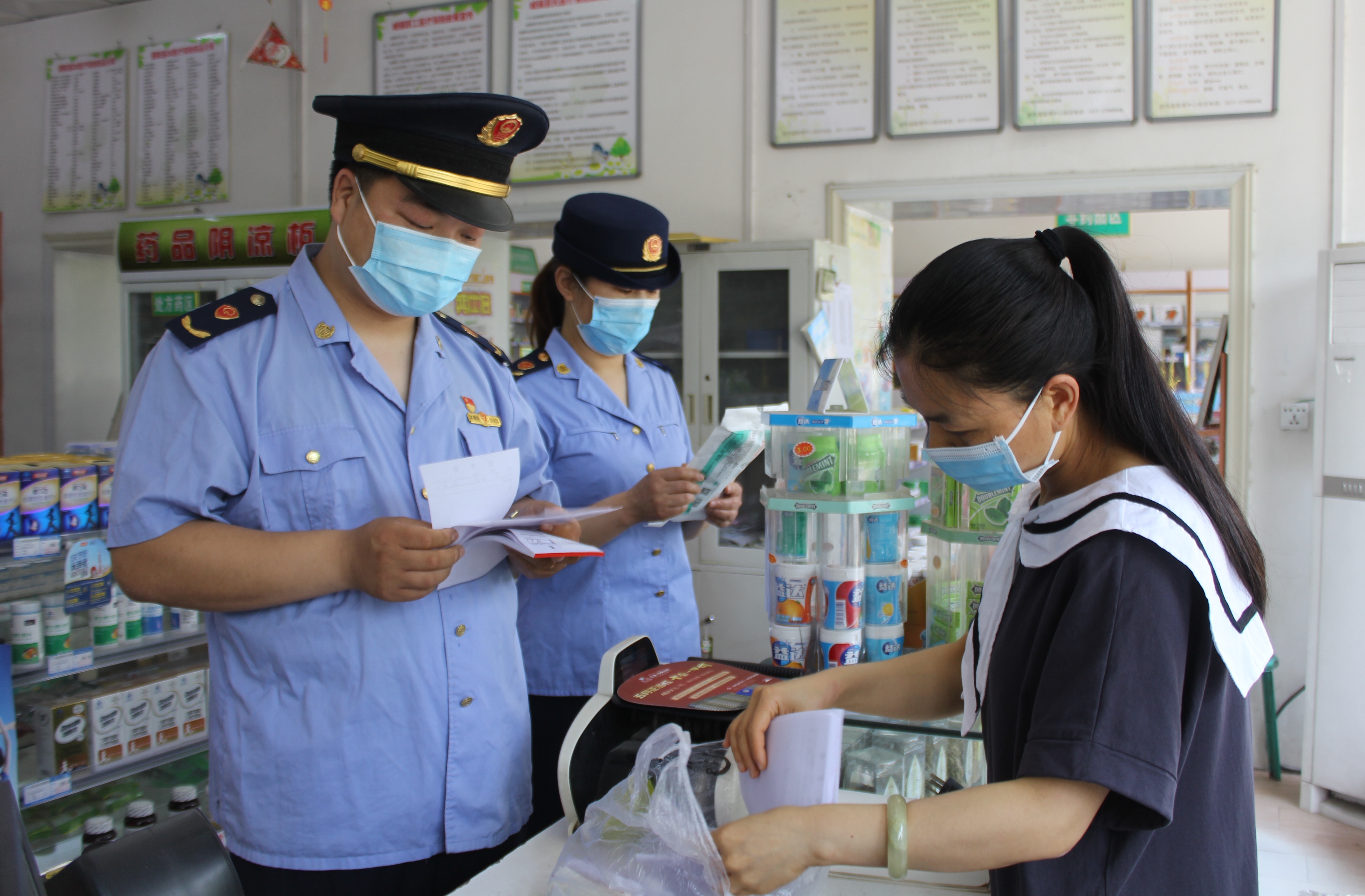 圖為該局執(zhí)法人員在一藥店檢查執(zhí)業(yè)藥師開具處方情況。