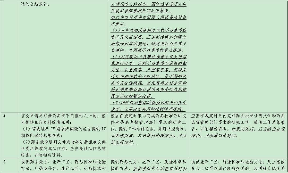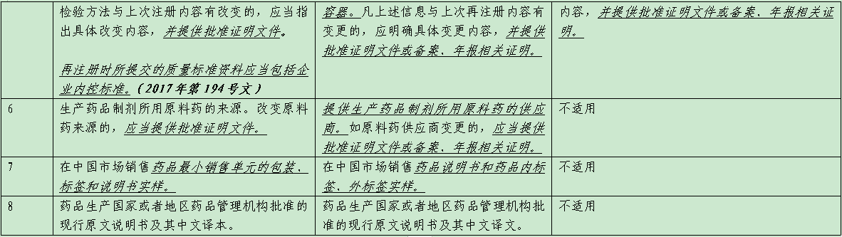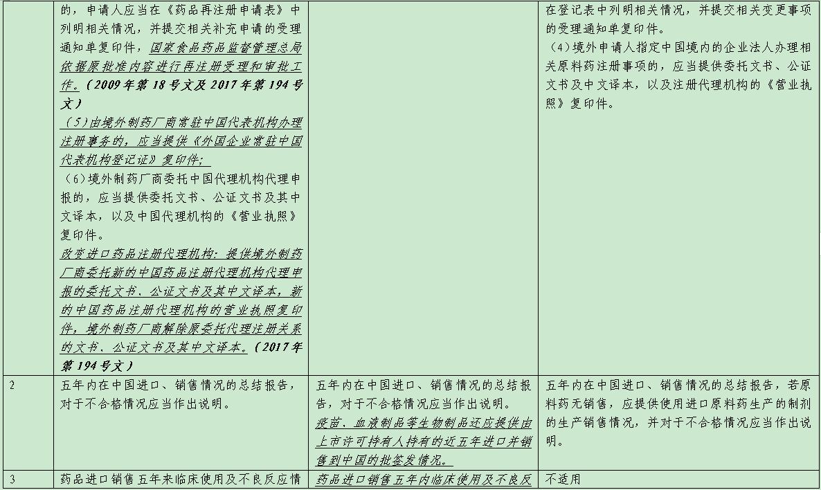 表1 新舊藥品注冊法規(guī)環(huán)境中進口藥品再注冊申報要求對比