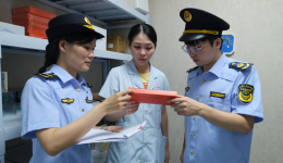 圖為該局執(zhí)法人員正在對一款滋補(bǔ)類藥品的外包裝標(biāo)識信息等進(jìn)行核對檢查。
