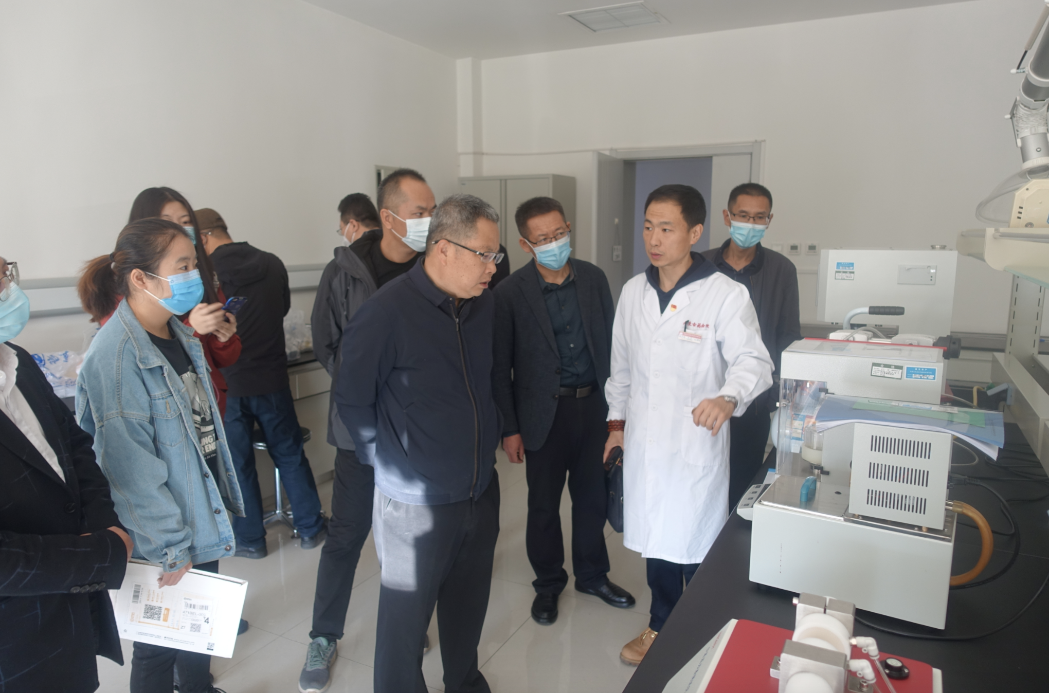 自治區(qū)藥監(jiān)局醫(yī)療器械監(jiān)督管理處、藥品檢驗研究院、藥品不良反應(yīng)監(jiān)測中心、藥品審評查驗中心,全區(qū)無菌企業(yè)、義齒、口罩、微生物等不同業(yè)態(tài)的醫(yī)療器械生產(chǎn)企業(yè)代表,以及新聞媒體記者共同走進自治區(qū)藥品檢驗研究院,參觀了該院用于義齒、醫(yī)用口罩以及輸液器、注射器等相關(guān)檢測儀器,零距離了解醫(yī)療器械檢驗流程。