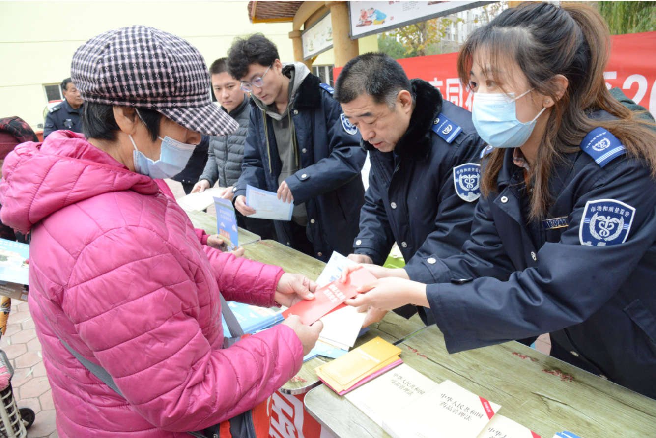 圖為宣傳活動(dòng)現(xiàn)場(chǎng),工作人員為群眾發(fā)放藥品安全宣傳資料。