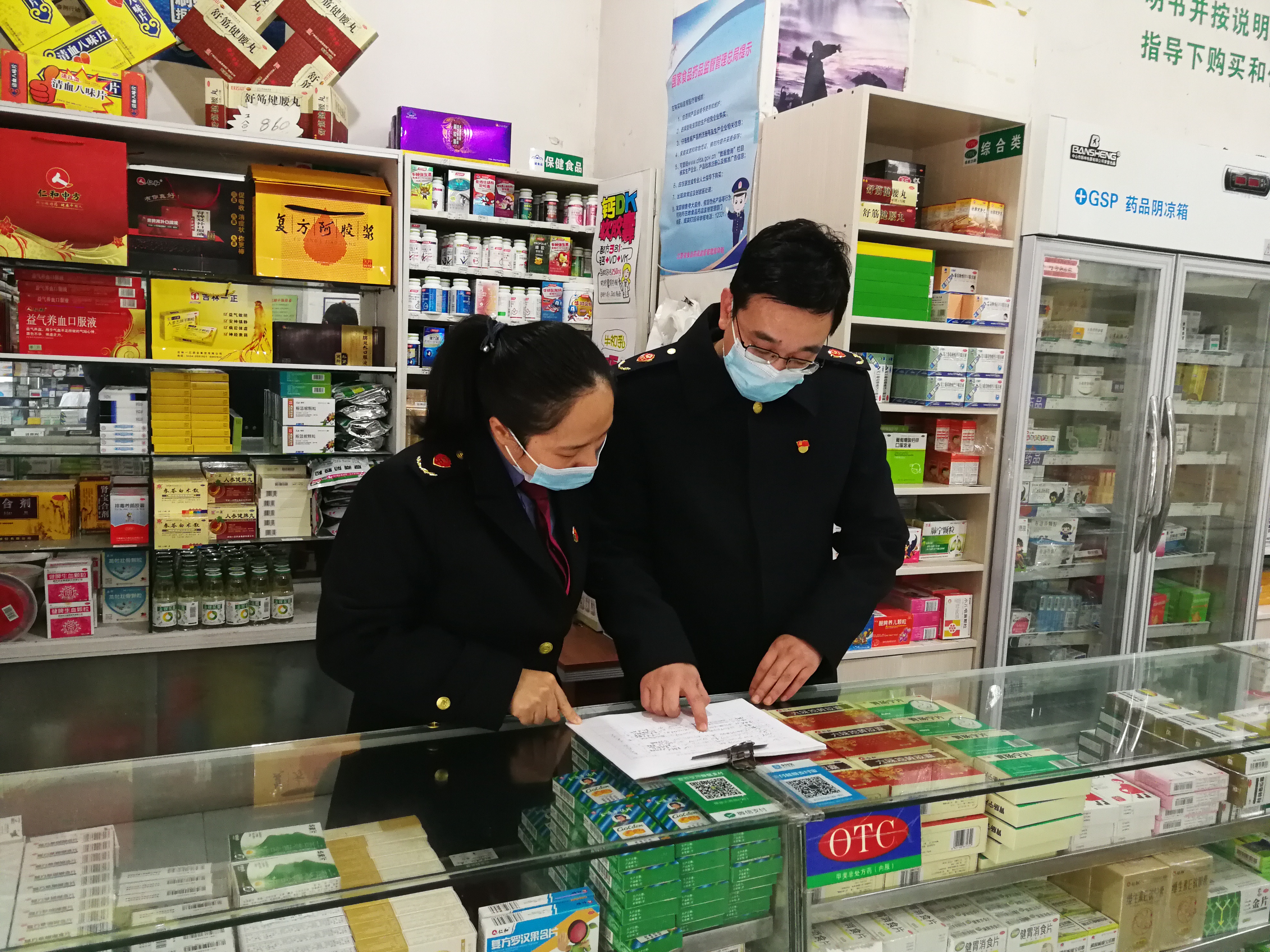 圖為該局執(zhí)法人員正在核對(duì)藥品零售企業(yè)銷售發(fā)熱、止咳等藥品的實(shí)名登記記錄。
