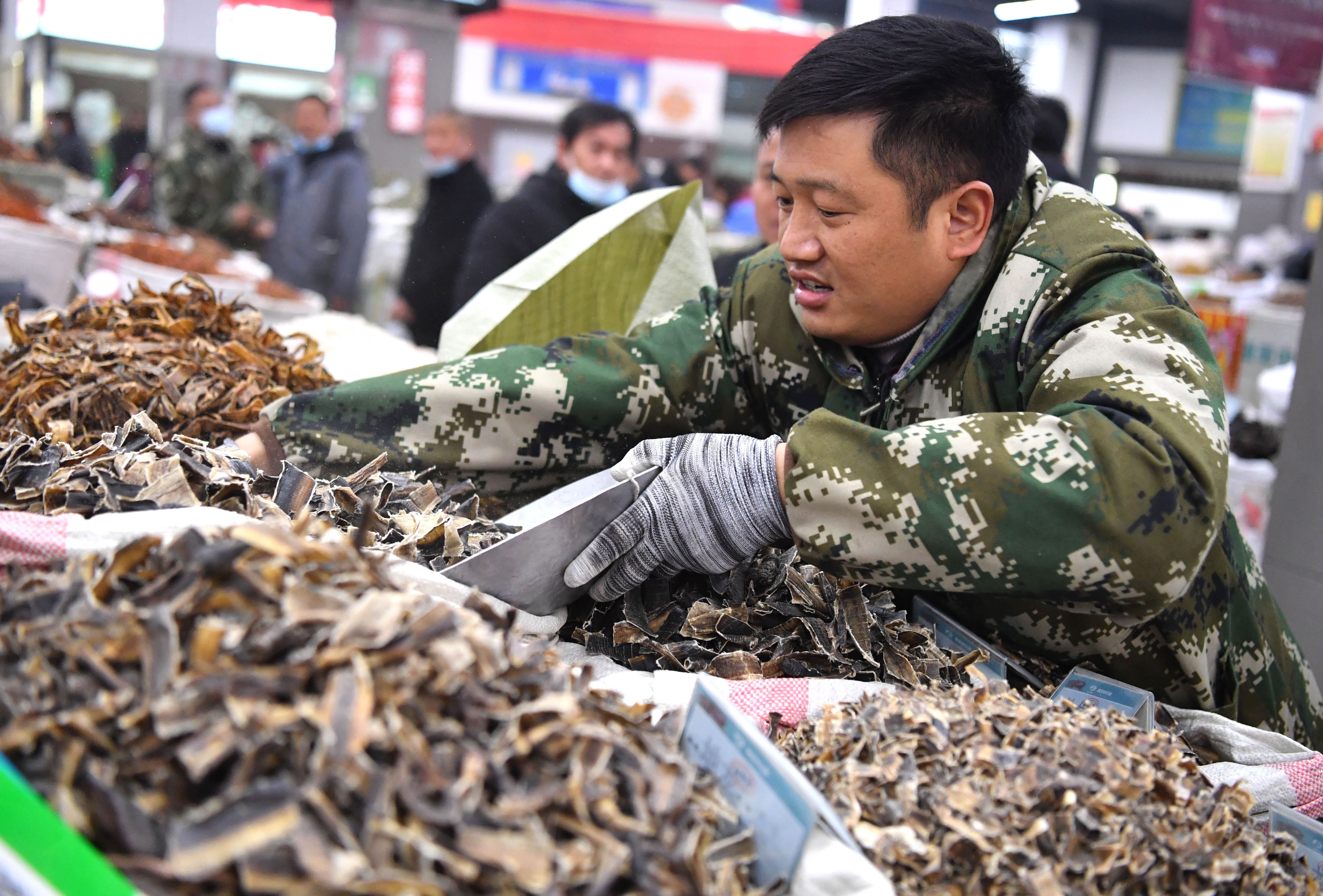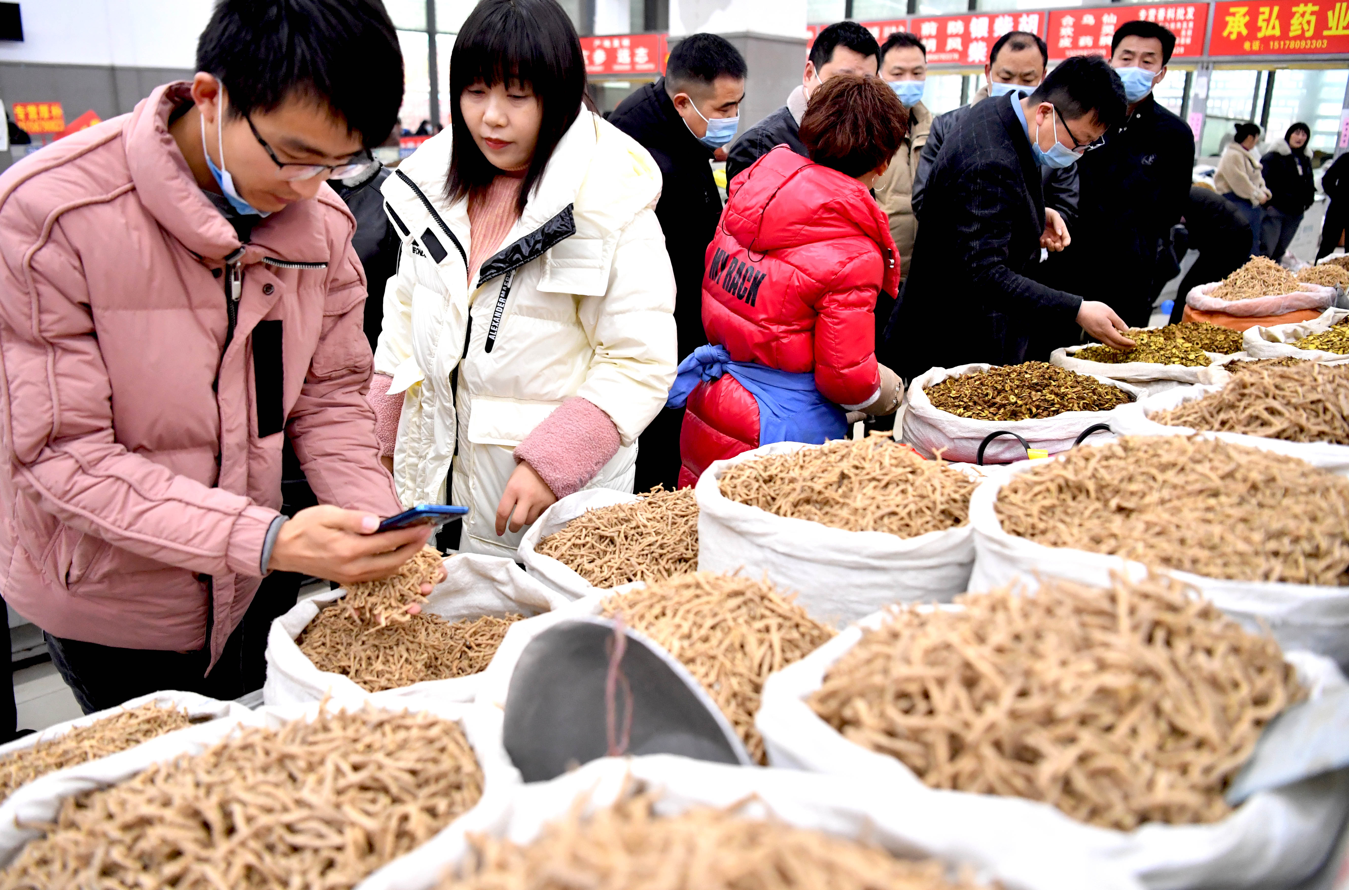 早春時節(jié),安徽省亳州中藥材專業(yè)市場交易活躍,前來采購藥材的藥商絡(luò)繹不絕。(劉勤利 攝)