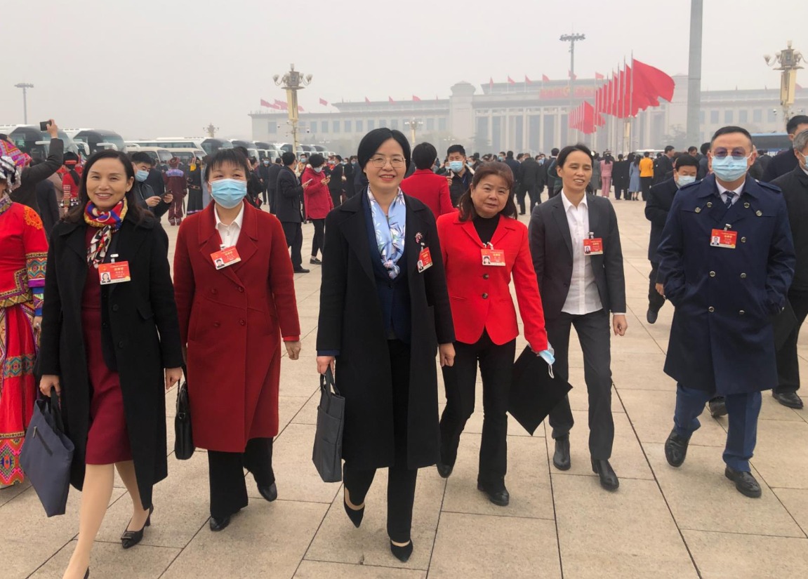 3月5日,第十三屆全國人民代表大會(huì)第四次會(huì)議在北京人民大會(huì)堂開幕。圖為湖南團(tuán)的代表們步入會(huì)場。(徐遠(yuǎn)冰 攝)