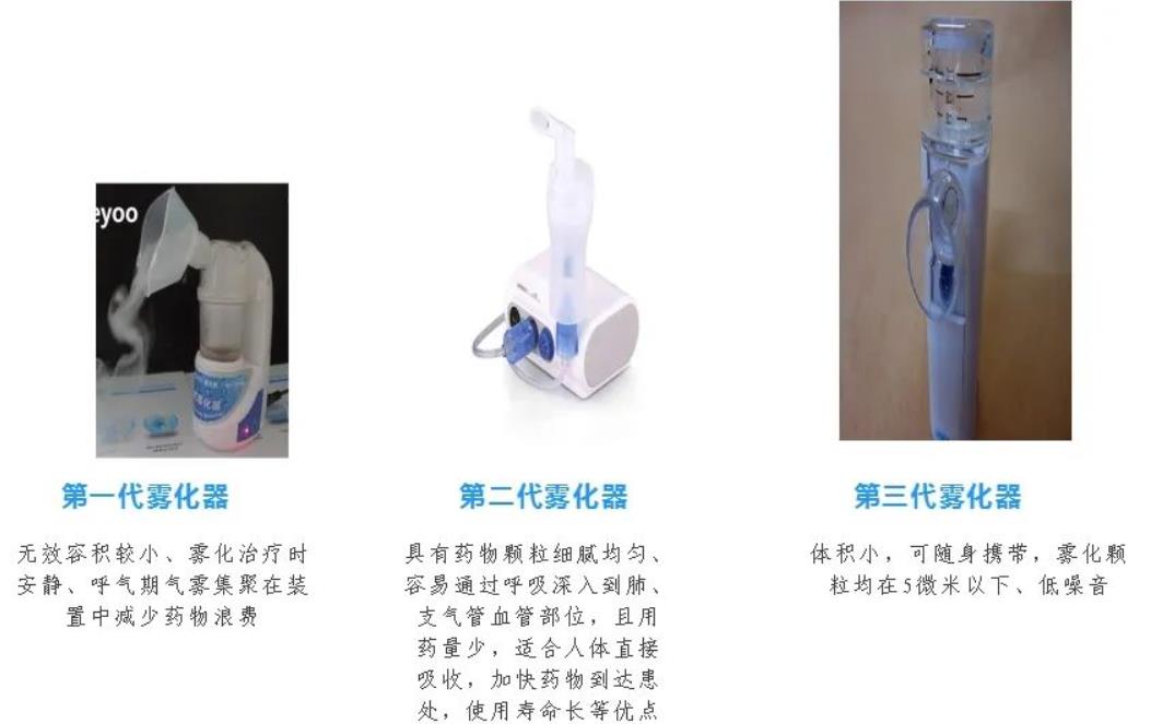 隨著技術(shù)的發(fā)展,目前用于哮喘治療的霧化器產(chǎn)品已從第一代升級(jí)到第三代,這三代產(chǎn)品呈現(xiàn)出霧化器三個(gè)不同的發(fā)展階段。在醫(yī)學(xué)上,超聲霧化器被稱為第一代霧化器,壓縮式霧化器為第二代霧化器,微網(wǎng)式霧化器為第三代霧化器。