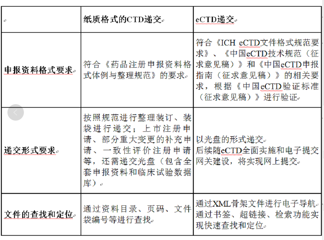 中國(guó)紙質(zhì)遞交和eCTD遞交的比較