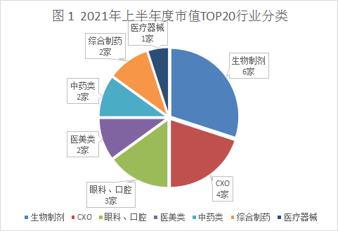 表1:2021年6月30日A股上市醫(yī)藥企業(yè)市值Top20