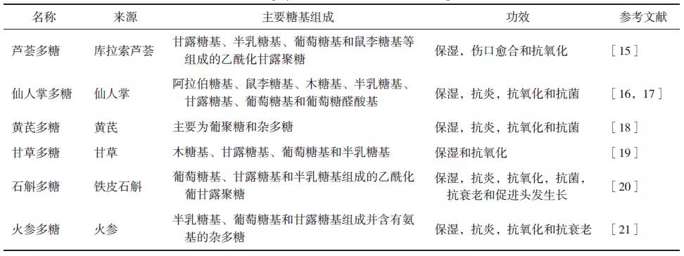 表1 ?具有保濕作用的植物多糖