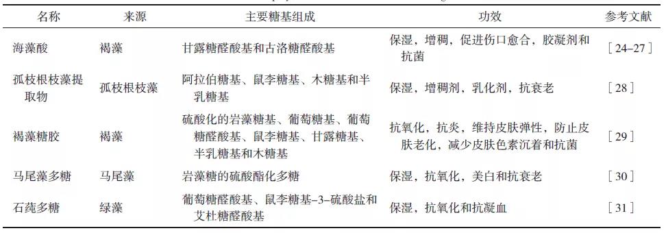 表2 ?具有保濕作用的海藻多糖