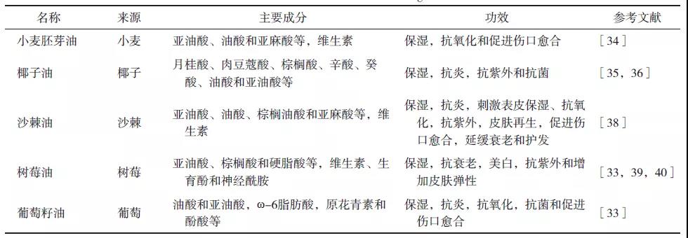 表3 ?具有保濕作用的植物油