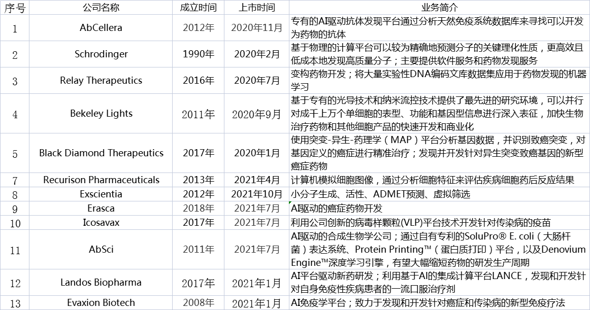 各AI制藥公司持續(xù)公布的令人振奮的突破進展,使得該領域熱度持續(xù)攀升;以Schrodinger、Relay、Recursion和Exscientia等為代表的多家明星AI制藥公司敲鐘上市,更為整個AI制藥市場猛添“柴火”,使得資本入場更加洶涌。