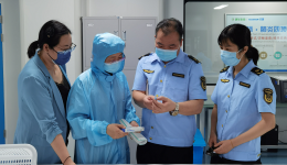 圖為鐘山縣市場監(jiān)管局執(zhí)法人員在一家新冠肺炎病毒檢測試劑使用單位檢查。