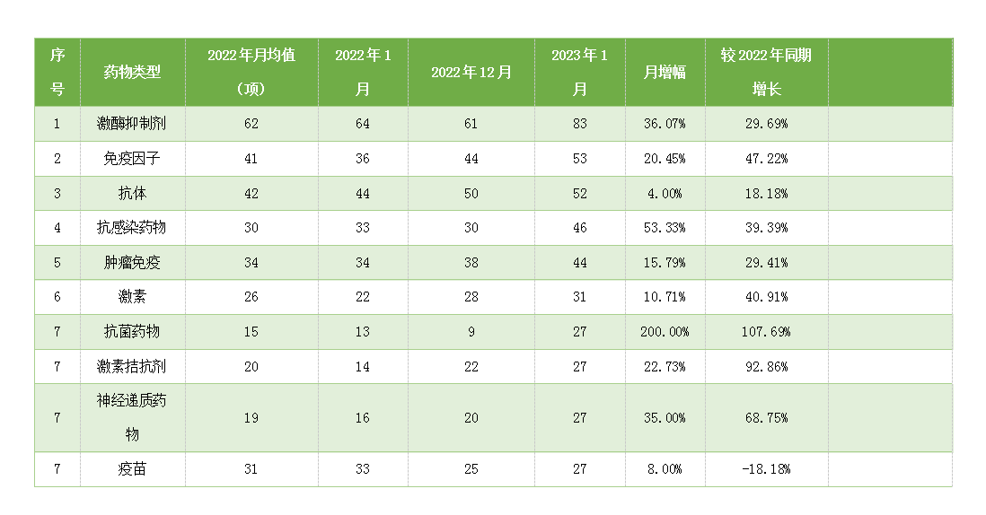 2023年1月份抗菌和抗感染藥物新開臨床試驗數(shù)量大幅增長