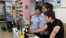 圖為6月19日?qǐng)?zhí)法人員在一家藥品零售企業(yè)門店檢查含特殊藥品復(fù)方制劑的“進(jìn)銷存”情況和購買此類藥品顧客的人員信息登記情況。