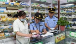 圖為7月25日,該局敦仁街道市場(chǎng)監(jiān)管所執(zhí)法人員在一家藥店檢查。