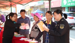 圖為該局工作人員向趕集群眾宣傳安全用藥知識。
