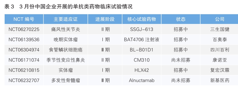2024年3月份美國Clinicaltrial數(shù)據(jù)庫臨床試驗數(shù)據(jù)顯示:單抗藥物臨床試驗數(shù)量飆升?中國貢獻六項研究