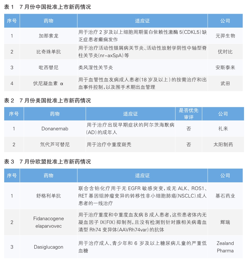 2024年7月中美歐批準上市的新藥中,有兩款“全球新”藥物在美國獲批上市。
