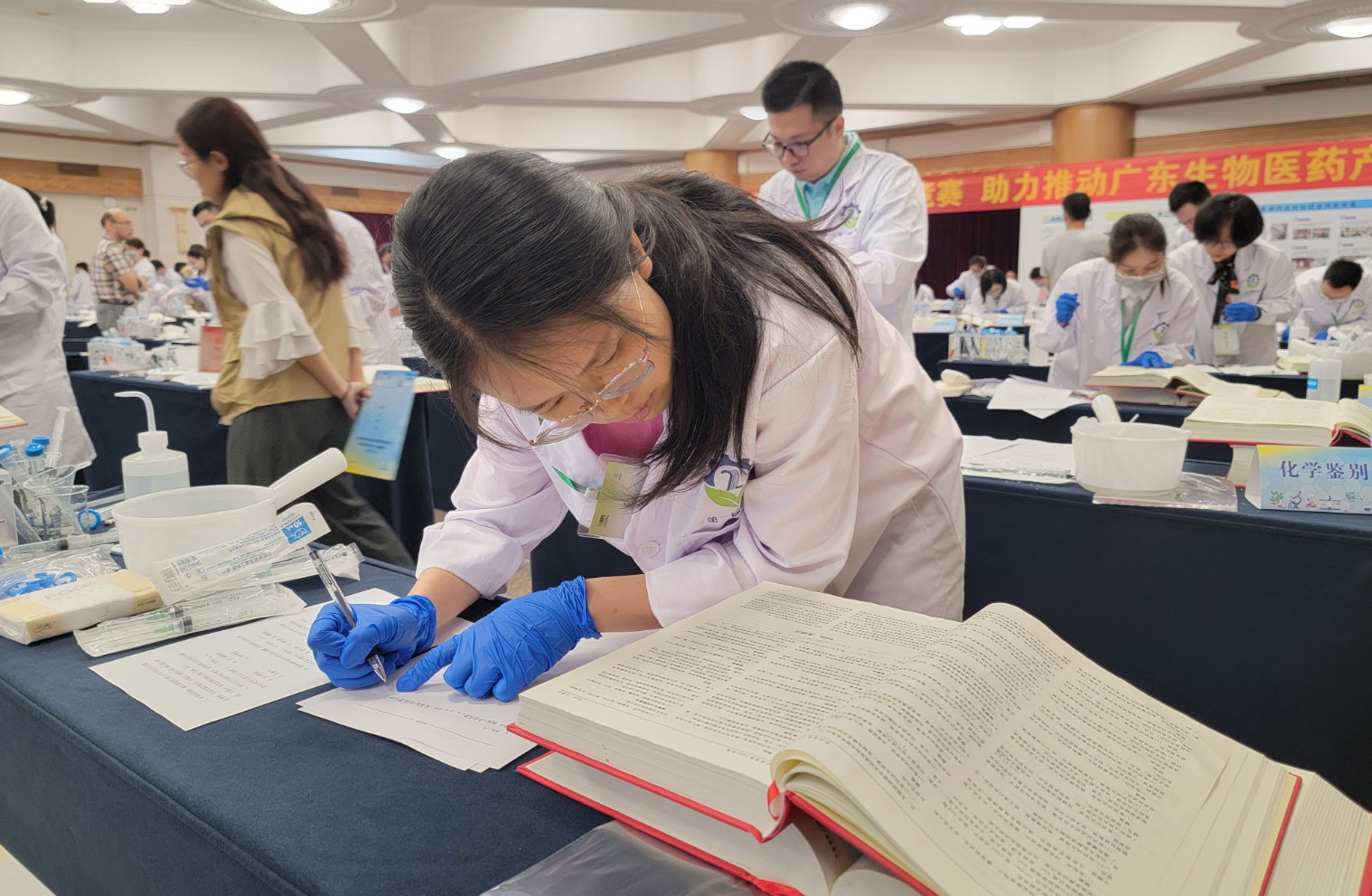 競賽現(xiàn)場66名選手現(xiàn)場競技。競賽操作臺(tái)上,選手們攤開一本本厚厚的2020版《中國藥典》,參照“寶典”,緊張有序地操作著手里的試管。來自全省藥檢系統(tǒng)的22支參賽隊(duì)伍同臺(tái)競技,圍繞“快速鑒別、精準(zhǔn)檢驗(yàn)——理論知識(shí)考核、化學(xué)反應(yīng)鑒別、容量分析定量”設(shè)定的個(gè)人獎(jiǎng)項(xiàng)和團(tuán)體獎(jiǎng)項(xiàng)展開激烈角逐,向社會(huì)公眾展示了藥品監(jiān)管技術(shù)支撐隊(duì)伍的“硬實(shí)力”,提升了監(jiān)管部門的權(quán)威性和公信力。經(jīng)過一天的角逐,來自廣州市藥品檢驗(yàn)所代表隊(duì)的張碧珊拔得頭籌,獲得個(gè)人特等獎(jiǎng),廣州市藥品檢驗(yàn)所代表隊(duì)獲得團(tuán)體一等獎(jiǎng)。