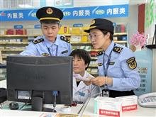 圖為該局執(zhí)法人員正在轄區(qū)內(nèi)一家藥店開展相關(guān)檢查。(孫俊輝 孫建新 攝)