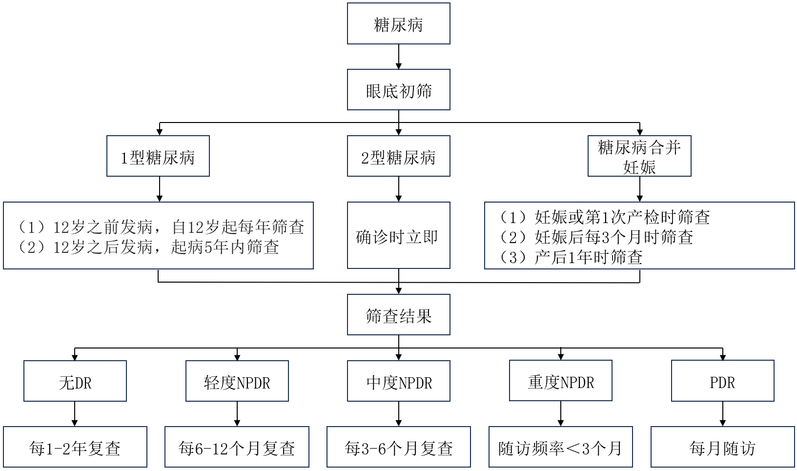 圖為DR的篩查流程圖。NPDR:非增生型DR;PDR:增生型DR