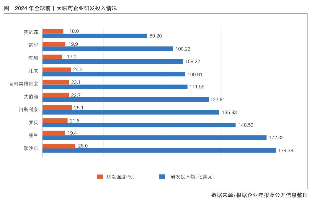 高強(qiáng)度研發(fā)投入是MNC保持全球競爭力的關(guān)鍵。2024年全球前十大醫(yī)藥企業(yè)持續(xù)加大研發(fā)投入(詳見圖)。這是其構(gòu)建技術(shù)壁壘、主導(dǎo)高價值市場、抵御專利懸崖風(fēng)險的戰(zhàn)略基礎(chǔ)。通過持續(xù)穩(wěn)定的研發(fā)投入,全球領(lǐng)先藥企在靶點(diǎn)發(fā)現(xiàn)、管線布局、臨床開發(fā)及轉(zhuǎn)化等關(guān)鍵環(huán)節(jié)建立起顯著優(yōu)勢,形成“高額研發(fā)投入—創(chuàng)新成果產(chǎn)出—豐厚市場回報—再投入”的良性循環(huán),不斷鞏固其行業(yè)領(lǐng)先地位。