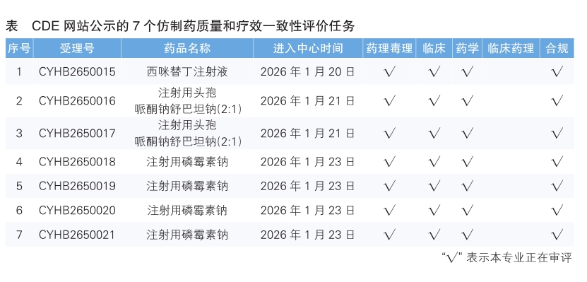 8.CDE網(wǎng)站公示7個(gè)仿制藥質(zhì)量和療效一致性評價(jià)任務(wù)(詳見表),涉及西咪替丁注射液等品種。