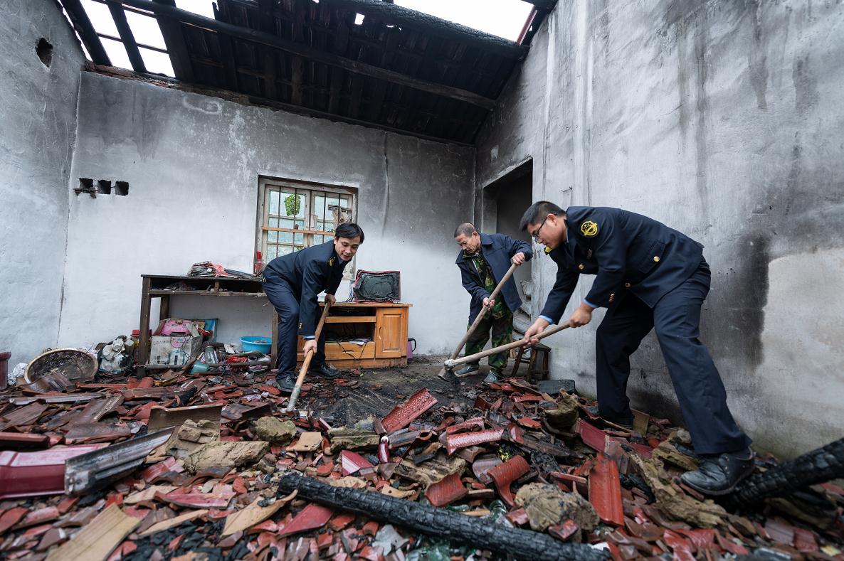 近日,興安縣溶江鎮(zhèn)五甲下村68歲的孤寡老人張昌躍家不幸發(fā)生火災(zāi),損失嚴(yán)重。上圖為興安縣食品藥品監(jiān)管局駐村第一書記蔣家龍(右一)和駐村干部袁勇久(左一)第一時(shí)間趕赴現(xiàn)場(chǎng)捐款捐物,幫忙清理善后,并及時(shí)幫其申請(qǐng)到了商業(yè)保險(xiǎn)賠付。 趙海軍 蔣家龍 攝影報(bào)道