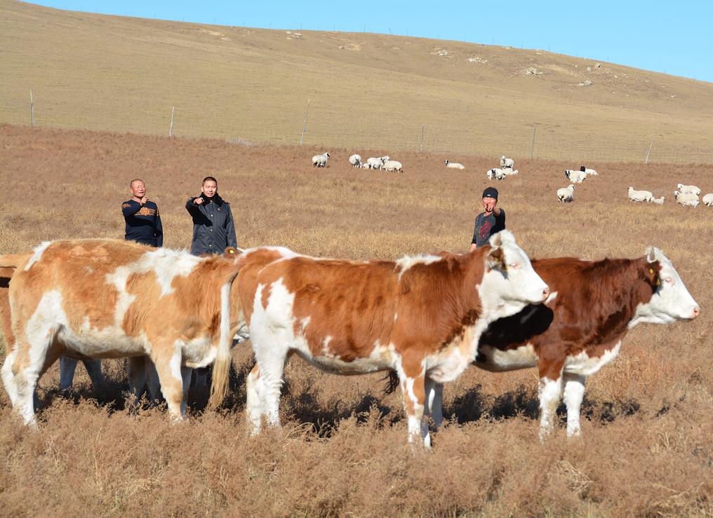 內(nèi)蒙古自治區(qū)西烏珠穆沁旗食藥工商質(zhì)監(jiān)局干部布日格德(中)擔(dān)任浩勒圖高勒鎮(zhèn)道倫達(dá)壩嘎查駐村第一書記8個月以來,深入了解貧困戶的生產(chǎn)生活狀況、致貧原因。他聯(lián)系旗扶貧辦為貧困戶申請的扶貧良種肉牛項目,已落實到戶。蘇日嘎拉圖 攝